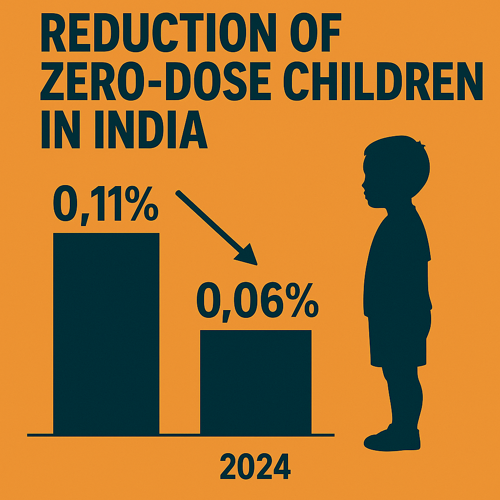 - India’s zero-dose rate of 0.06% places it among the top performers globally in child immunization.